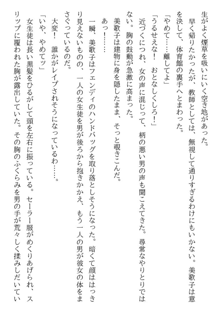 美歌子先生を嬲って犯したい! 美歌子先生に甘えてセックスを教えてもらいたい! 思いこそ違え、媚肉に抱く生徒の欲望は激しい 少年たちの熱い視線に惑わされ、 一度だけ肉体を開いてしまった美歌子…… それは女教師にとって痴獄への招待状だった!